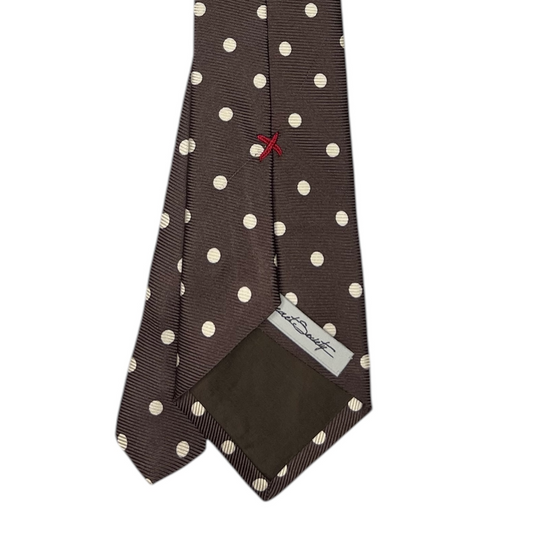 Tie - Brown w/ Bone Polka Dot