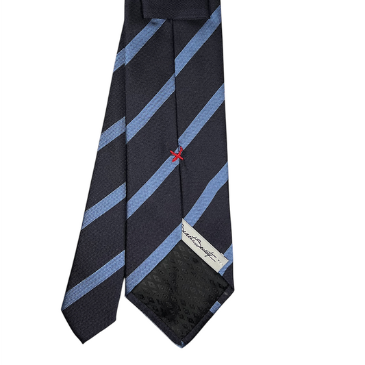 Tie - Navy w/ Sky Herringbone Striped Jacquard