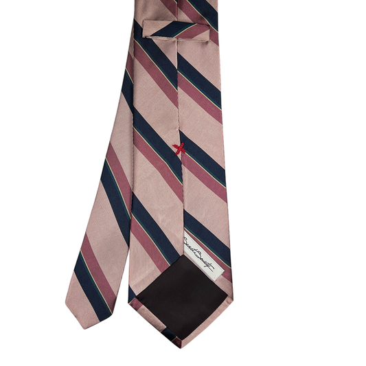 Tie - Pale Pink w/ Rose, Navy, Teal and Yellow Stripe