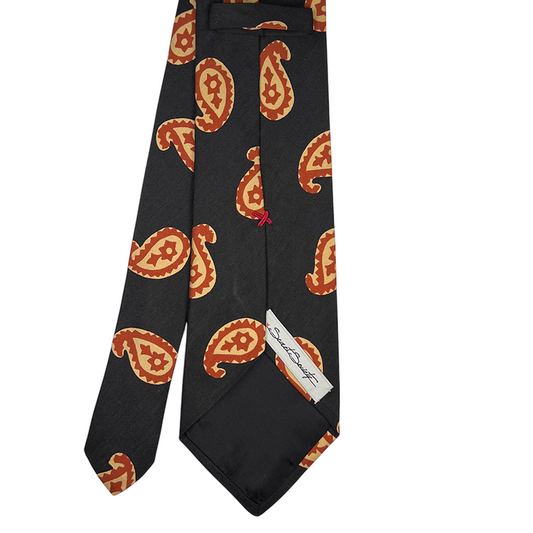Tie - Charcoal w/ Bone and Orange Large Paisley